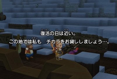 毒が消えて再び戦えるようになった事を喜ぶアネッサ。主人公が本物だと分かり、破壊の使者たるビルダーが来てくれたと喜ぶジローム爺さん。