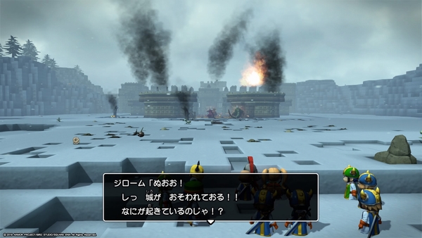 先のデーモン兵団のイオナズン連発といい、このゲーム敵の攻撃であっさり建物がぶっ壊れるんですが、